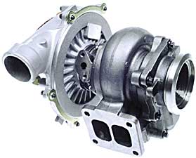 Nei motori turbocompressi, l’aria di combustione è già pre-compressata prima di essere erogata al motore. Il motore aspira lo stesso volume di aria, ma date le temperature più alte, viene erogata maggiore massa d’aria nella camera di combustione. Di conseguenza, può essere bruciato più carburante, così che la potenza d’uscita del motore cresca in riferimento alla stessa velocità e alla cilindrata.Nel compressore con gas di scarico, parte dell’energia del gas di scarico, che verrebbe normalmente persa, viene usata per azionare una turbina. Montato sullo stesso asse della turbina c’è un compressore che aspira l’aria di combustione, la comprime e poi la eroga al motore. Non esiste collegamento meccanicoal motore